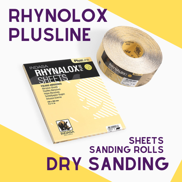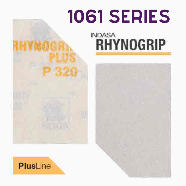 Indasa Rhynogrip Plus Line Abrasives har en velour-grebsbagside til krog-og-løkke-underlag, håndblokke og slibebrætter.