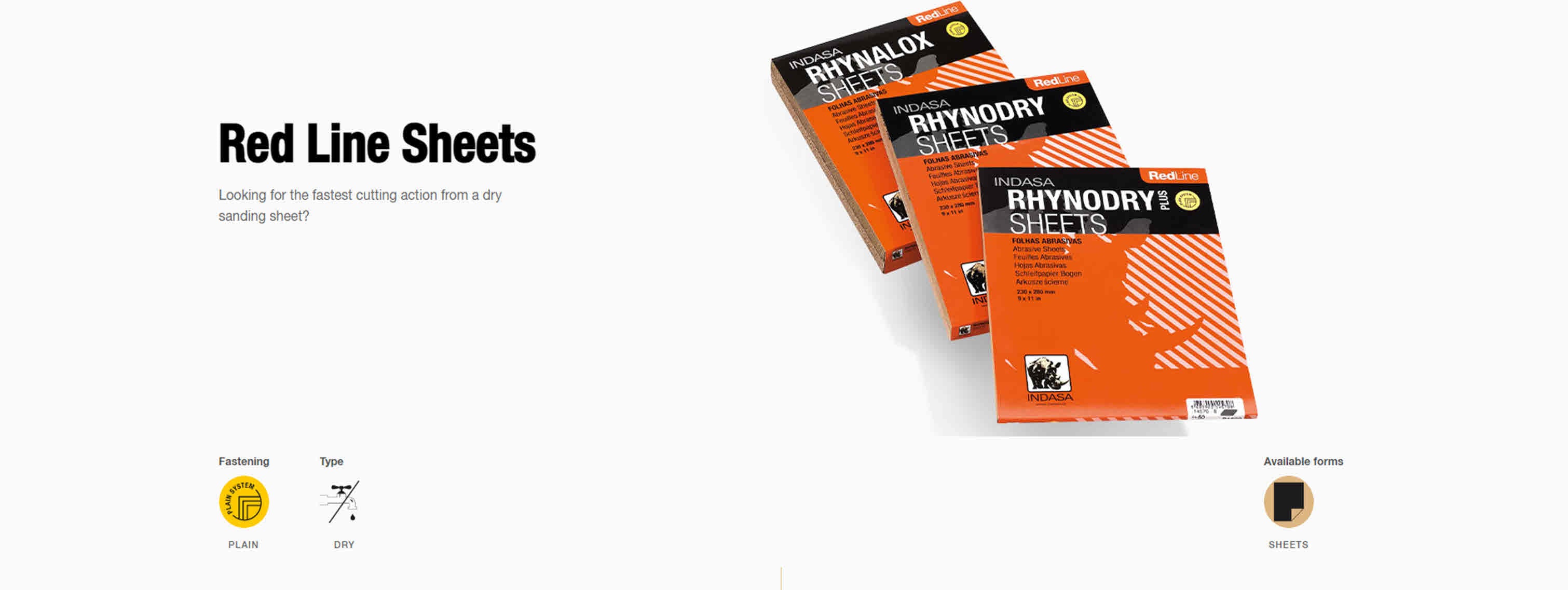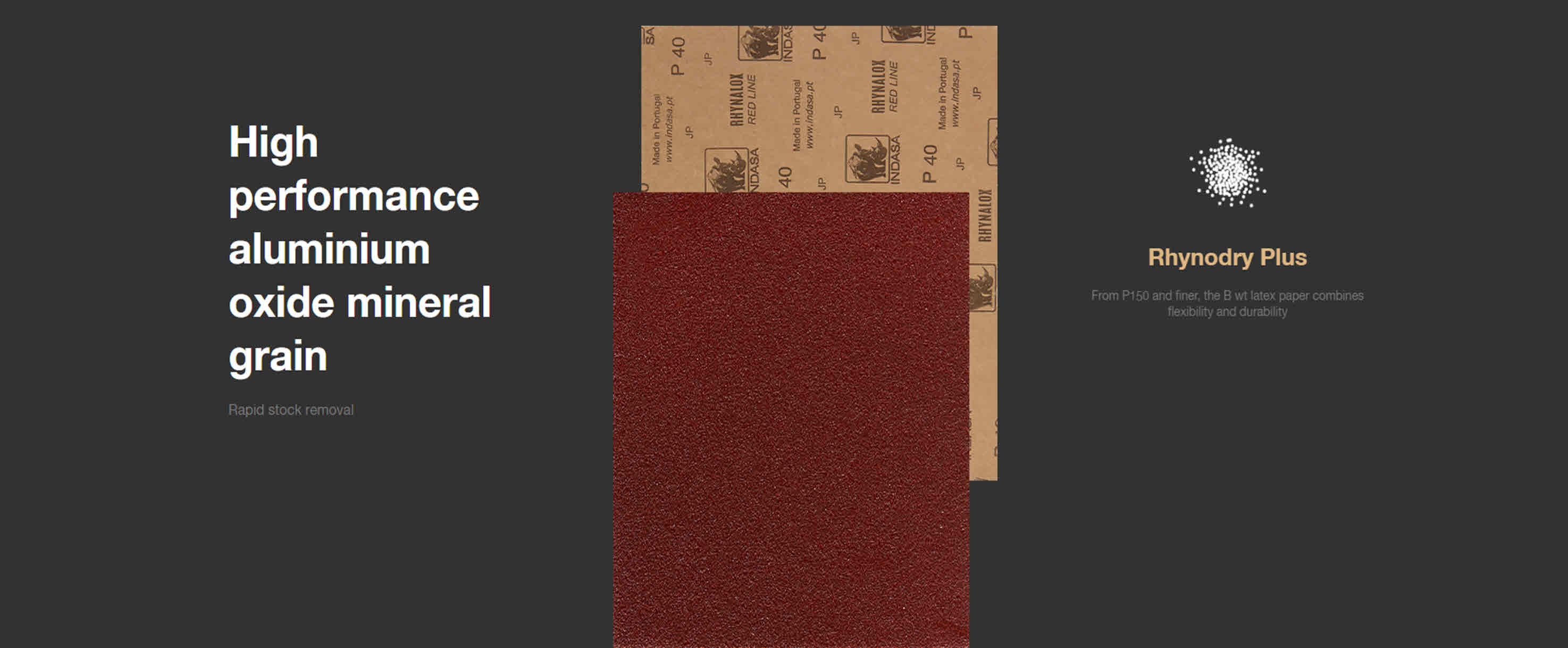 Indasa Red Line Rhynodry Heavy Duty Sanding Sheets (5 Series) are the perfect choice for use on hard materials such as metal, hard woods and composites; also a great choice for applications where extra flexibility is required in finer grits.